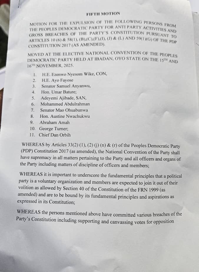 In what has been described as one of the most decisive actions in PDP’s recent history, the party confirmed the expulsion of several influential figures, including: