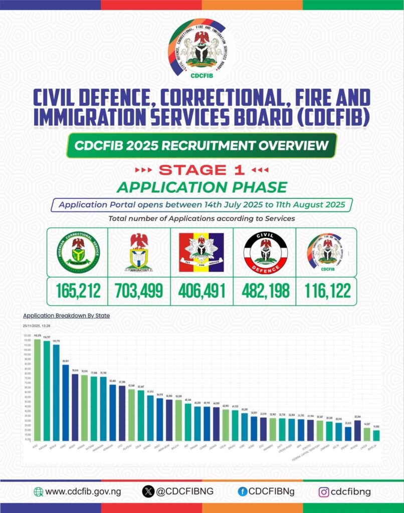 Tags: Application StatisticsCDCFIBNigerian Security AgenciesPublic Service JobsRecruitment 2025