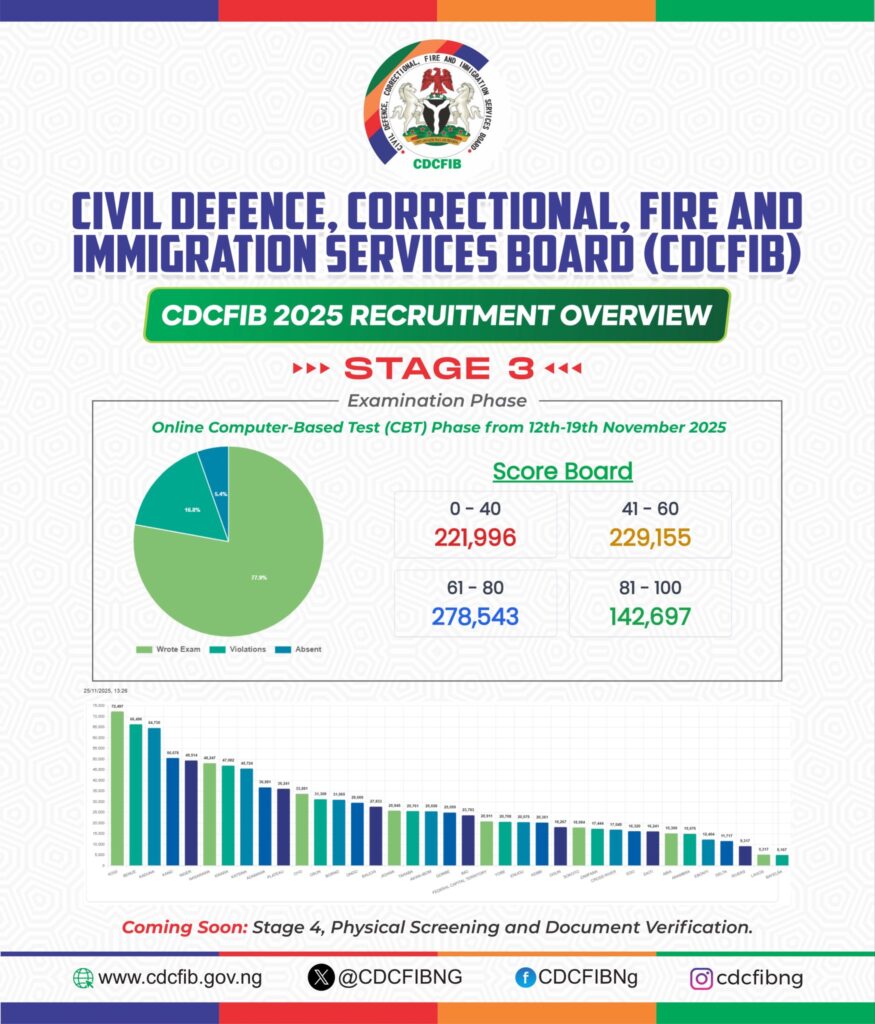 The 2025 cycle demonstrates once again the strong demand for federal employment opportunities in Nigeria’s security and emergency services sector.