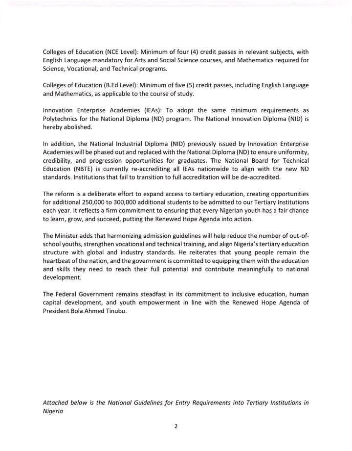 The government believes this reform will empower more young Nigerians to pursue tertiary education and help build a stronger, more inclusive academic future for the nation.