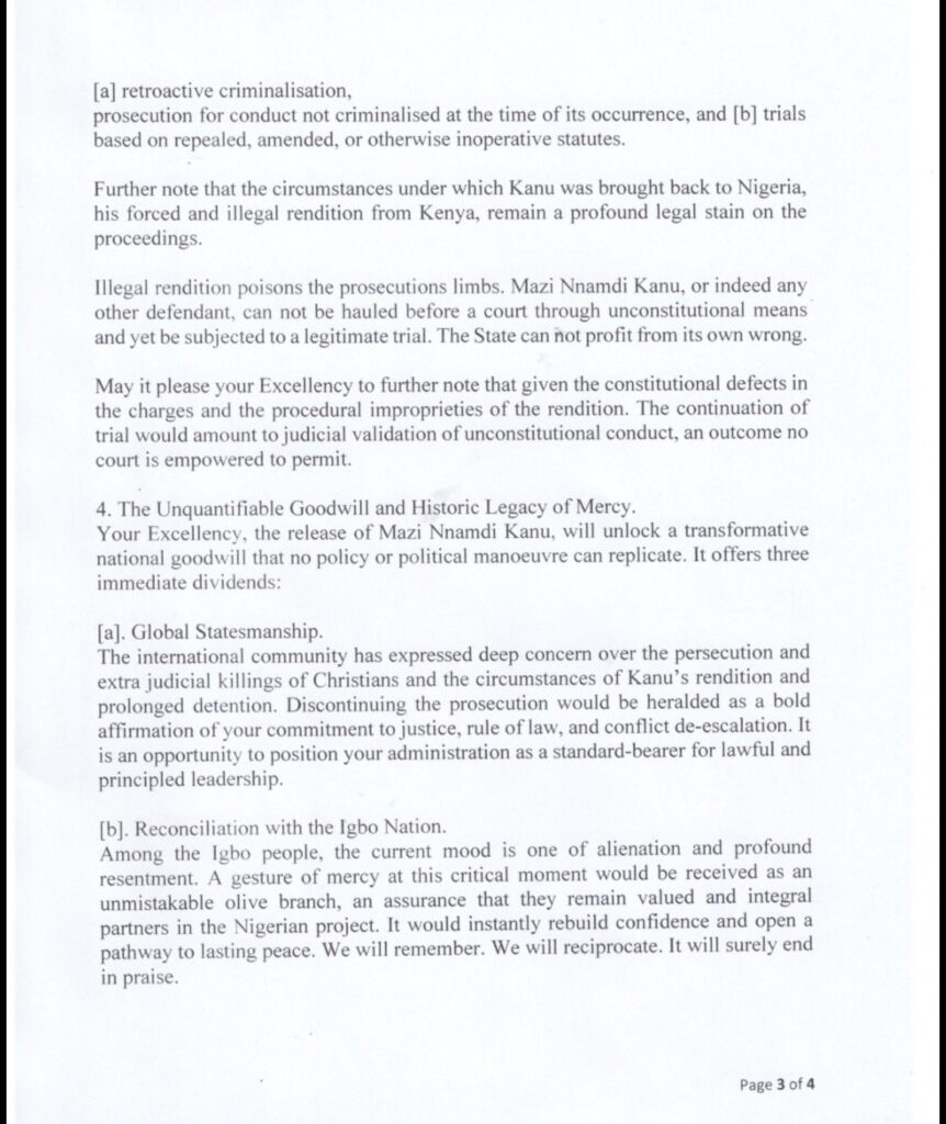 “Release Mazi Nnamdi Kanu through the instrument of nolle prosequi. This is the moment to restore hope to millions who yearn for peace, inclusion, and justice.”