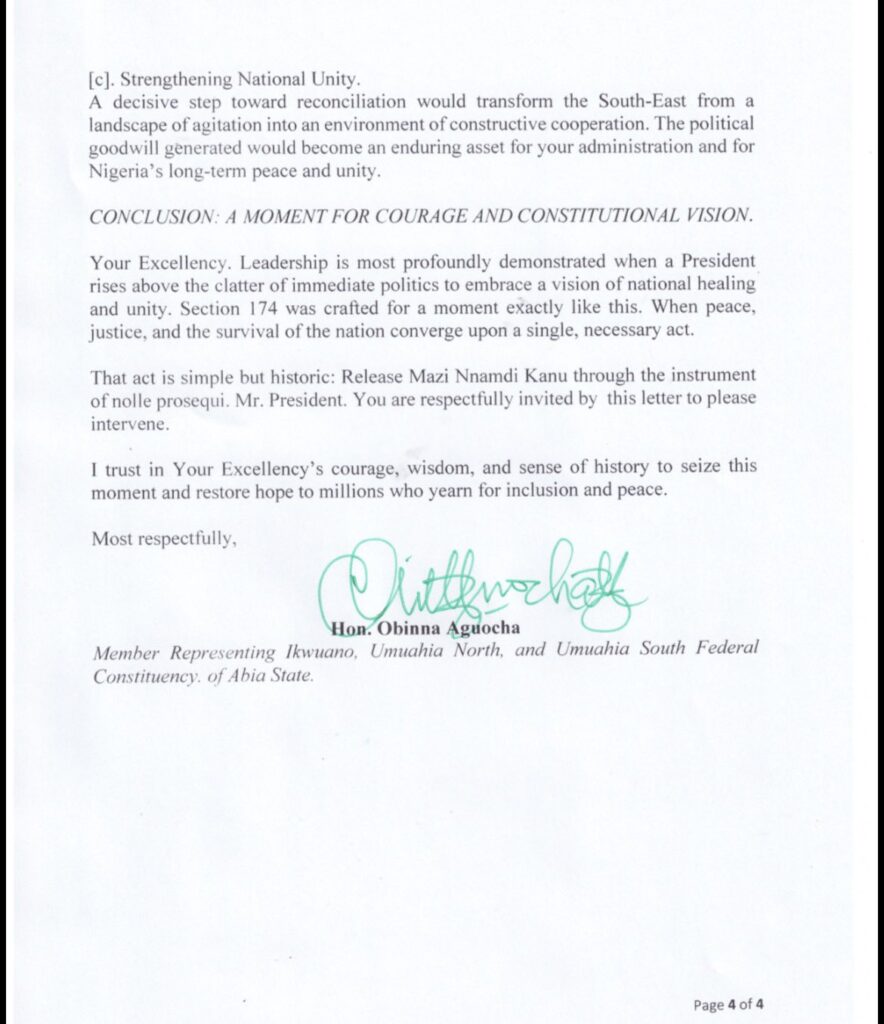 In a powerful appeal to promote national unity and de-escalate growing tensions in the South-East, Hon. Obi Aguocha, the member representing Ikwuano/Umuahia North/Umuahia South Federal Constituency in Abia State, has called on President Bola Ahmed Tinubu to exercise constitutional discretion and discontinue the prosecution of Mazi Nnamdi Kanu.