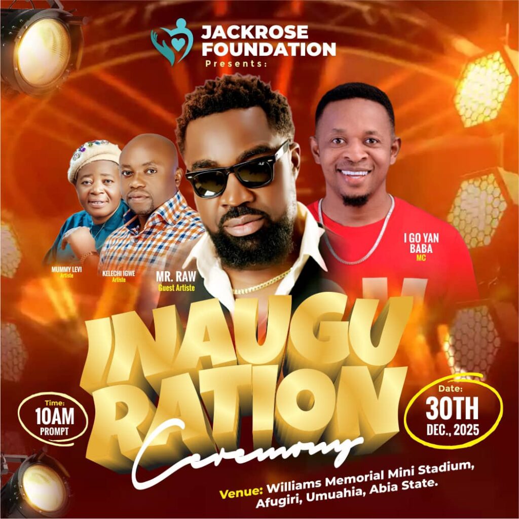 Jackrose Foundation will host its inauguration ceremony on December 30, 2025, at Williams Memorial Mini Stadium, Afugiri, Umuahia, Abia State.