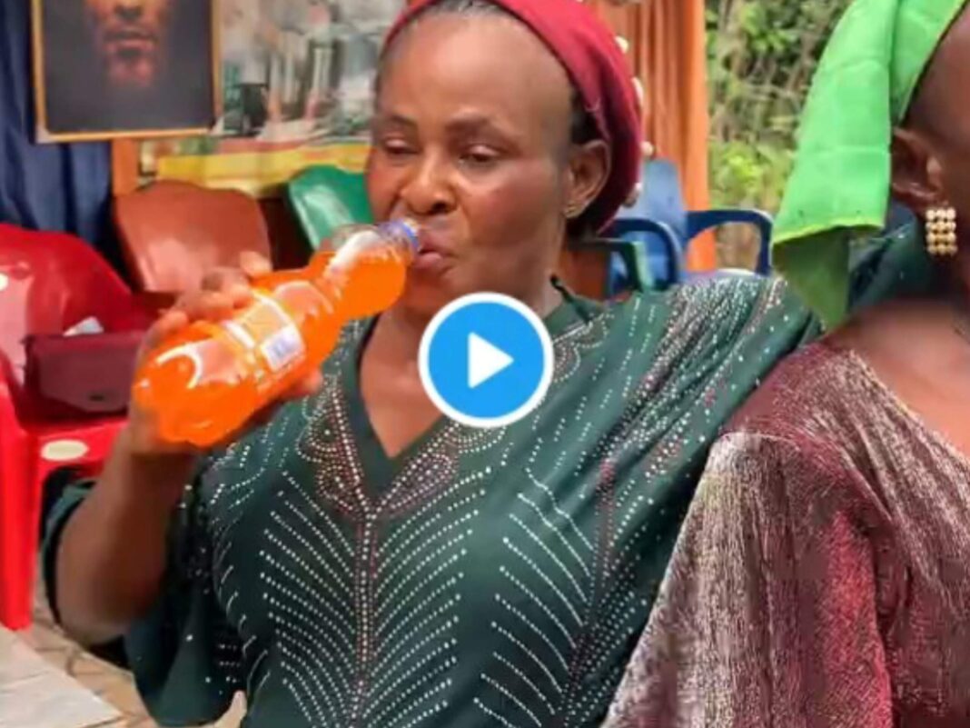 The 2.5-minute clip, reportedly recorded at an outdoor service beneath a banner labeled “Divine Sweetness,” shows the woman holding orange-colored soft drink in her mouth before spraying it outward in a dramatic, fountain-like display. Congregants positioned in front of her appeared to react instantly, falling backward onto the ground as the liquid reached them.