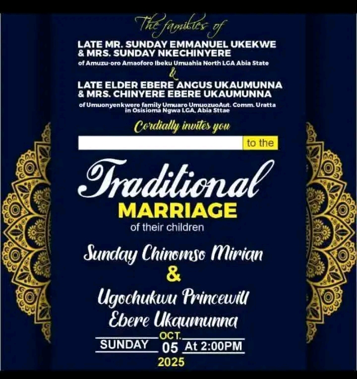 Bride-to-be, Mirian Sunday, dies suddenly in Umuahia just a day before her traditional wedding, leaving family and friends in shock.