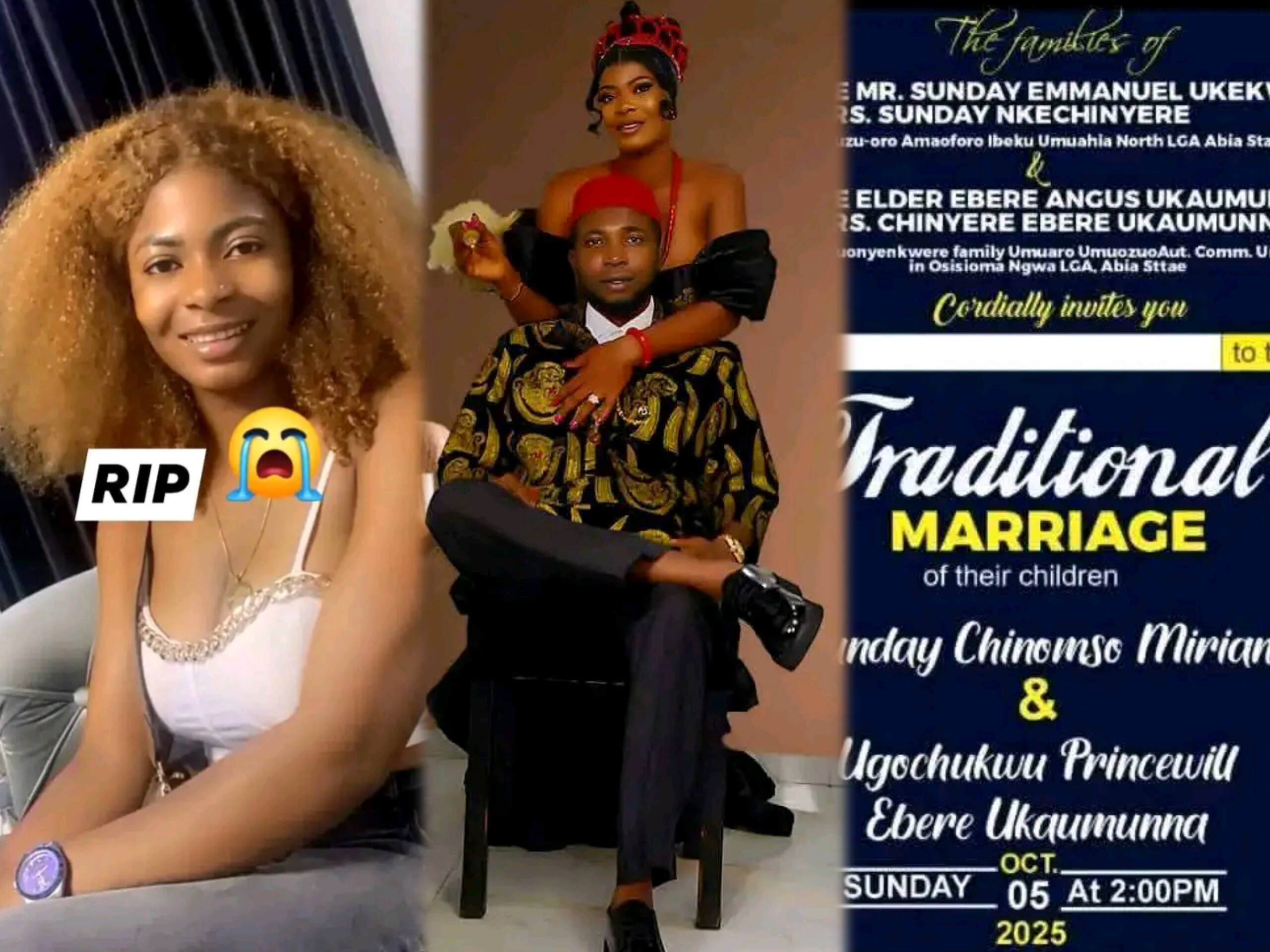 Bride-to-be, Mirian Sunday, dies suddenly in Umuahia just a day before her traditional wedding, leaving family and friends in shock.